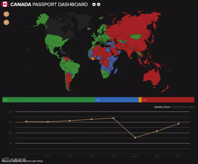 加拿大护照今年的成绩对比前两年有了巨大的进步,在疫情爆发期,仅有77个国家和地区对加拿大护照开放免签及落地签。