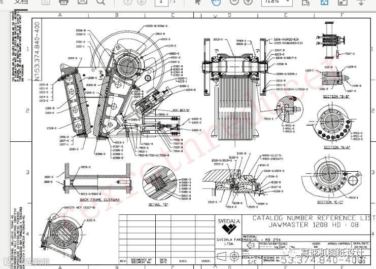 SANDVIK山特维克CJ412(JM1208)鄂式破碎机全套欧式原版生产英文图纸