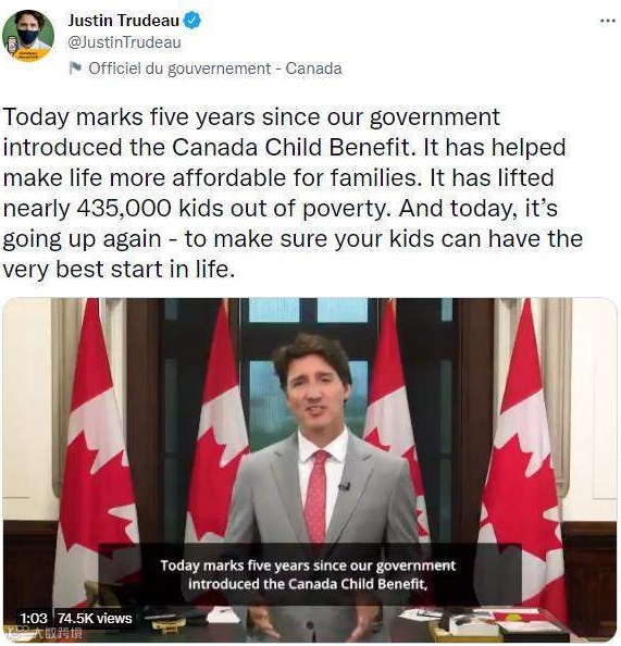 7月20日,杜鲁多在推特上宣布,加拿大再次增加牛奶金,以确保孩子们拥有一个美好生活的开始。