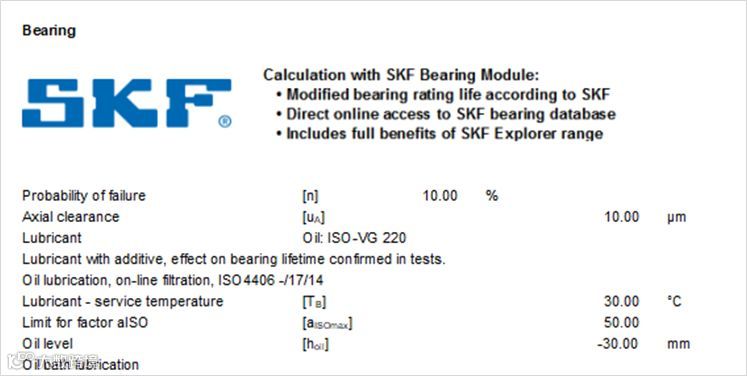 为简化齿轮箱的设计过程, KISSsoft和SKF合作开发了一个全新的交互工具。在KISSsoft软件中用户可以直接链接到SKF云端计算平台中选择最新的SKF轴承数据,并使用SKF计算工具进行校核,方便用户更加准确快速地选择合适的轴承。