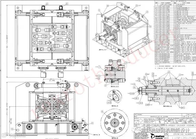Mesto美卓HRS800齿辊破碎机全套欧式原版生产英文图纸