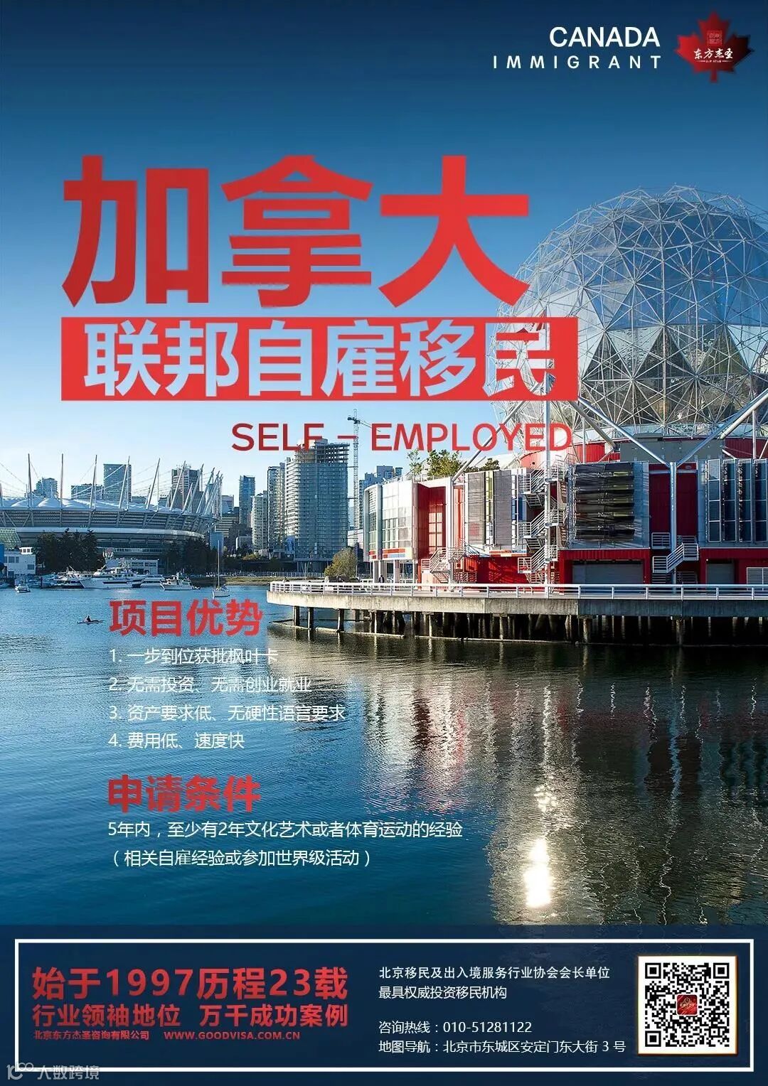 多元文化主义是加拿大人的一种生活和思维方式,在加拿大的移民政策中,自雇移民项目是加拿大政府的特殊人才引进计划(等同美国EB-1A),专门为从事文化、艺术、体育等活动的人士而设立。这里需要注意的是:自雇移民的范围包括但绝不仅限于上述(文化、艺术、体育)范围。