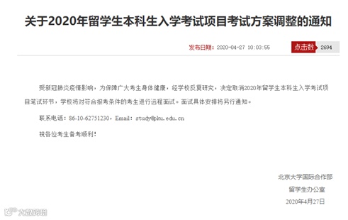 近日,北京大学也紧随清华大学发布《关于2020年留学生本科生入学考试项目考试方案调整的通知》。