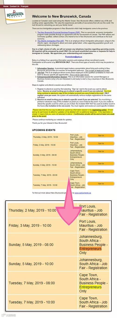重磅喜讯!今天(2019年3月16日),加拿大NB省移民局官网公布:加拿大NB省移民局将于2019年5月在南非举办两场官方见面会,Entrepreneurs类见面会有两场,地点分别为南非第一大城市约翰内斯堡(Johannesburg)和南非第二大城市开普敦(Cape Town)。