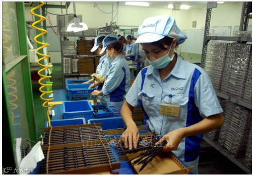 河内市光明工业园区越南INOAC有限公司电子产品零部件生产链。