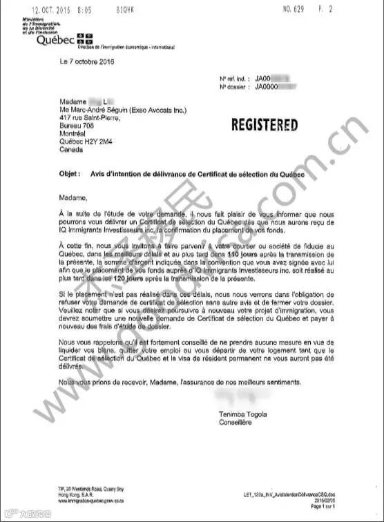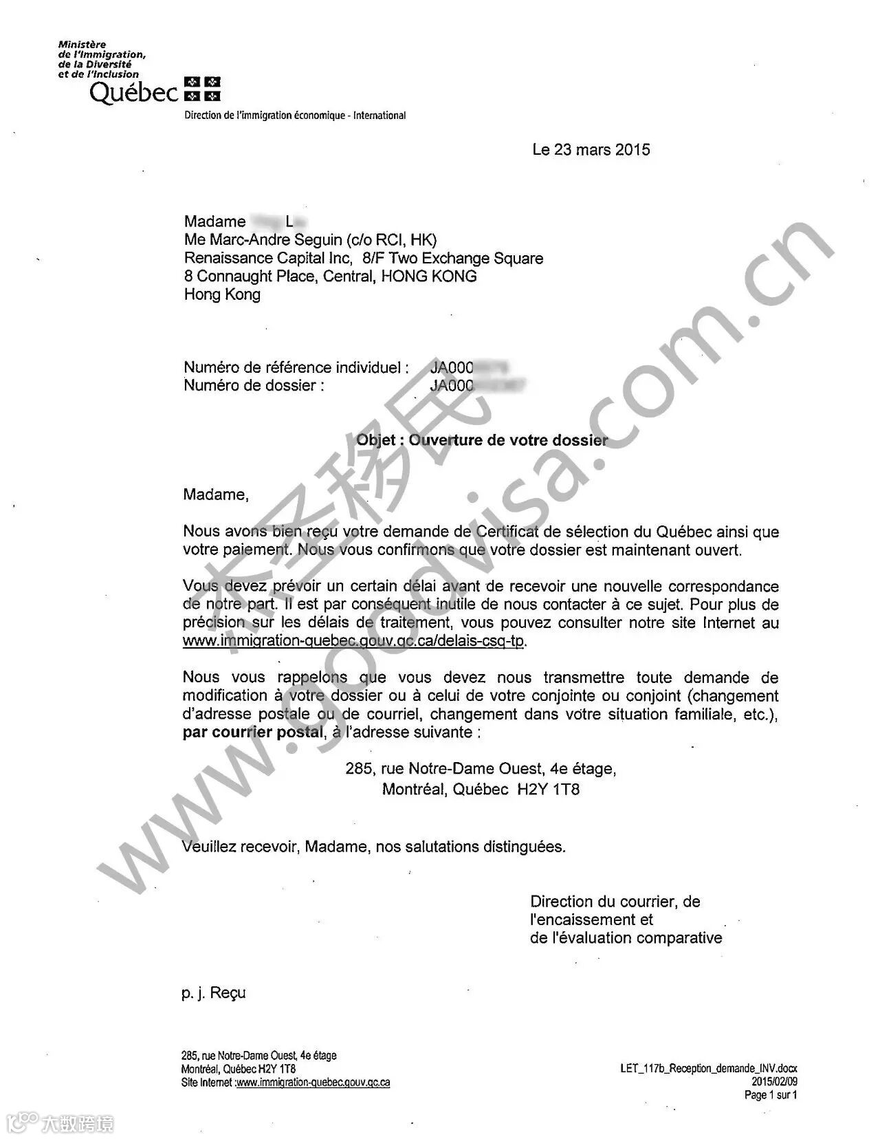 L女士的名下的一家主要公司情况较为复杂,一些合法资产无法提供详细的证明,且银行账户大额资金进出较多,容易引发移民官质疑!针对L女士的复杂情况,我们首先对客户提供的文件进行了仔细的梳理和研究。随后特别针对L女士“量身订制”一套申请方案,整套材料从多个方面展示了L女士的优势和亮点,对一些薄弱环节给予客观的解释和评价,在文案整合材料过程中,更是得到了L女士的积极配合。于2015年3月份获得魁省档案号。