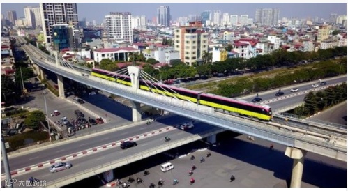 呠—河内火车站轻轨全长12.5公里,其中,高架路段长达8.5公里,地下铁路长达4公里。共设12个车站(地上8个,地下4个)。该项目的投资总额为11.76亿欧元(约合32.91万亿越盾),由法国政府、法国开发署、亚洲开发银行和欧洲投资银行提供援助。