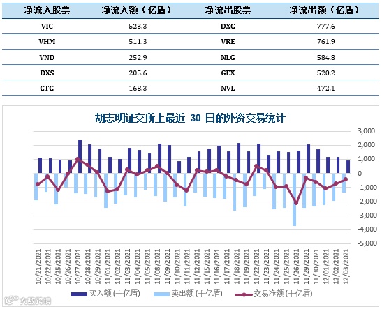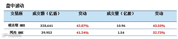 胡志明证交所上外资净流出 4152.1亿盾,河内证交所上外资净流出17.4亿盾。