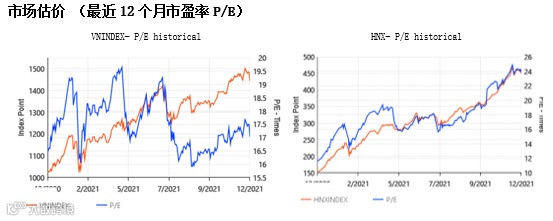 就板块方面,房地产板块成为最近吸引大量的资金流引起若干股票涨停的板块。越南央行的16号新通告 相同于中国针对许多房地产融资活动的“三道红线”政策的轻版。未来, 企业发行债券业务将受到审查。此动态将有助于放缓投机性资金流。采取紧缩政策以控制资产泡沫的同时,截至11月底通胀指数保持在相当低水平,大规模的刺激经济发展方案将被考虑采取,为财政政策及货币政策打开空间。