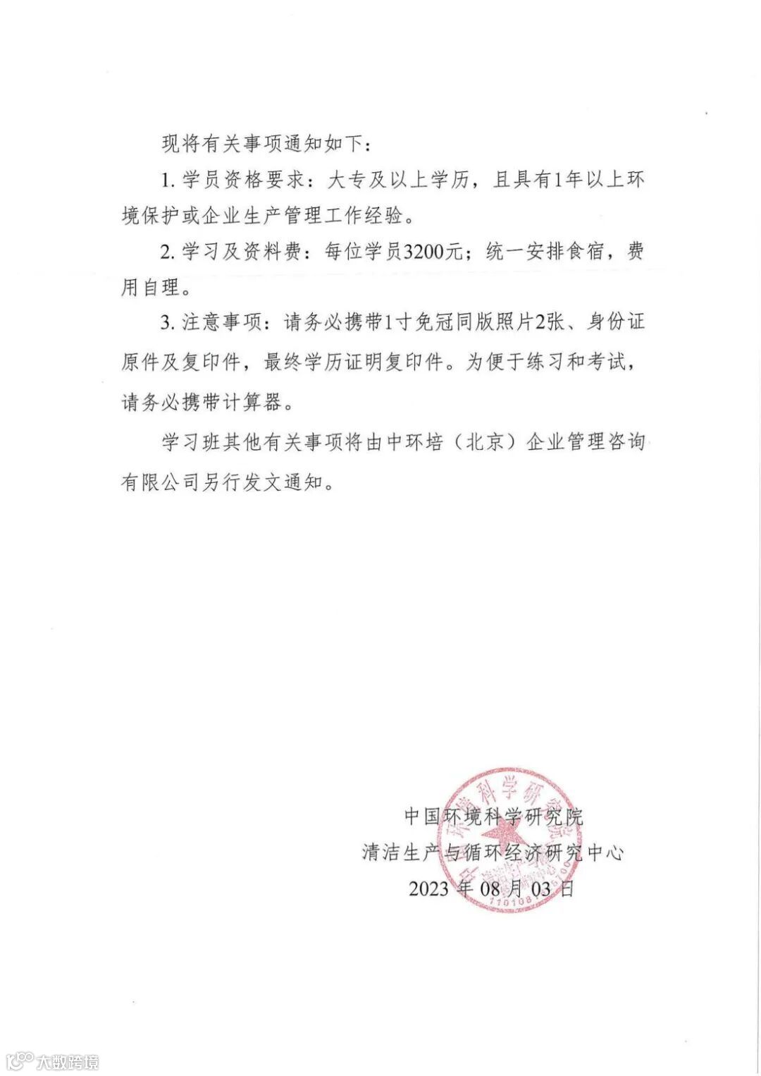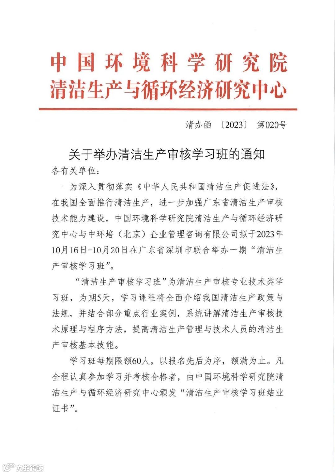 中国环科院清洁生产与循环经济研究中心(原环保部清洁生产中心)与中环培(北京)企业管理咨询有限公司于2023年10月16-20日在广东省*深圳市在联合举办清洁生产审核学习班。