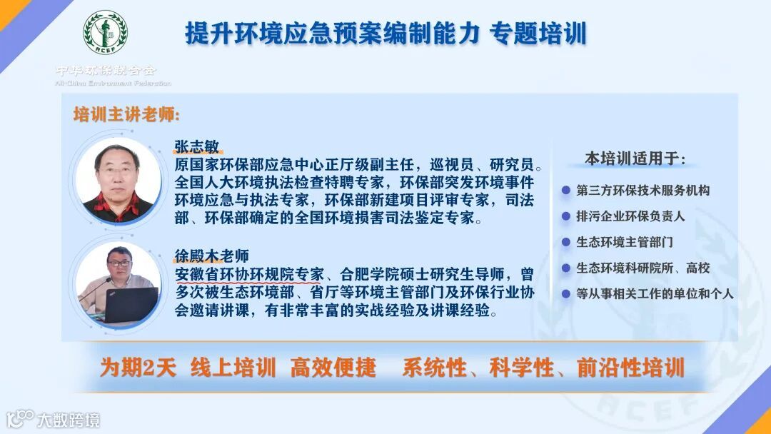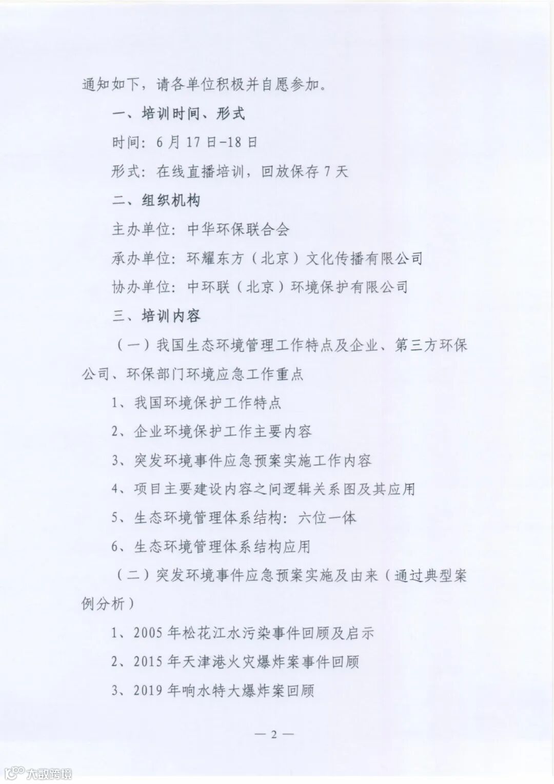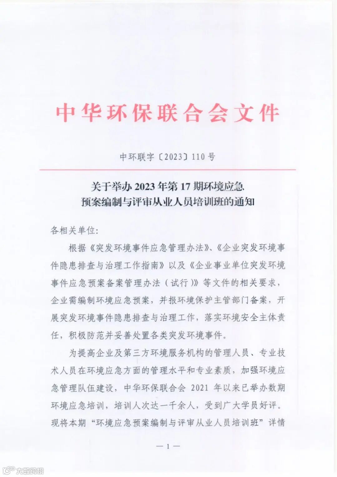 根据《突发环境事件应急管理办法》、《企业突发环境事件隐患排查与治理工作指南》以及《企业事业单位突发环境事件应急预案备案管理办法(试行)》等相关要求,企业需编制环境应急预案,并报环境保护主管部门备案,开展突发环境事件隐患排查与治理工作,落实环境安全主体责任,积极防范并妥善处置各类突发环境事件,也为更好的帮助企业和第三方环保技术服务机构完成环境应急预案的相关工作,加强环境风险防范化解能力,提升环境应急管理岗位同志的工作能力水平,我会定于2023年6月17-18日开展“环境应急预案编制及评审从业人员”培训。