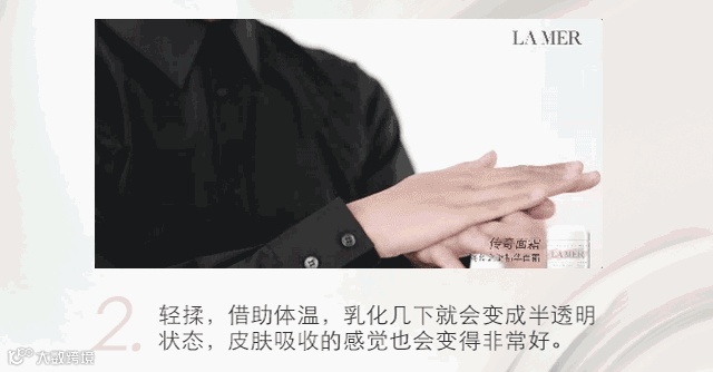 然后跟另一个手的指腹摩擦产生热讲面霜乳化