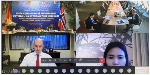 11月25日下午,越南工贸部同挪威贸易工业渔业部、越南驻挪威大使馆、挪威创新署(InnovationNorway)以及其他有关机关联合举行了题为“新形势下越南—挪威贸易关系发展前景”的越南—挪威企业线上商贸对接会。