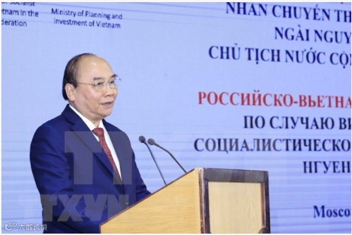 越南国家主席阮春福出席越俄企业论坛并发表讲话。