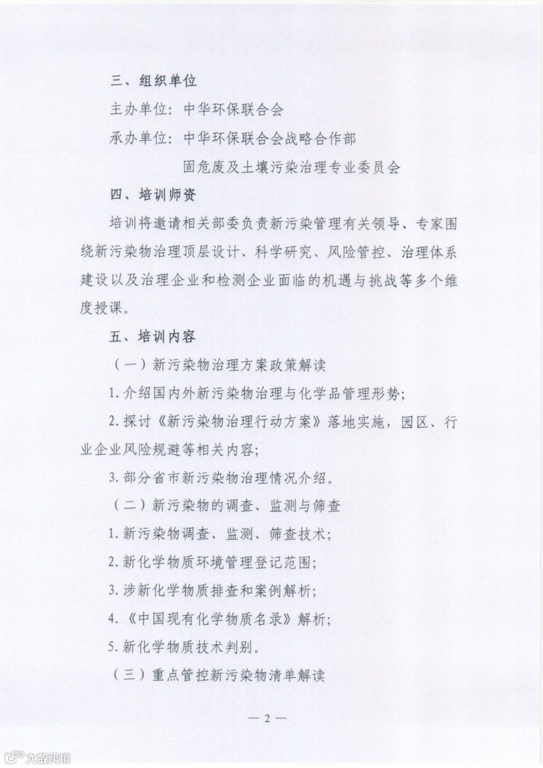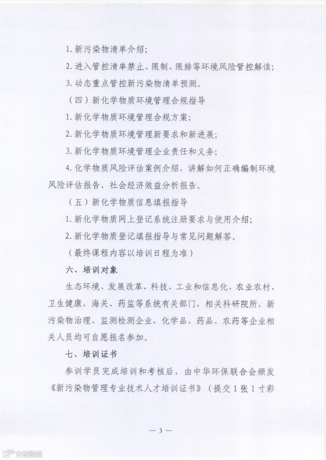培训收费:2800/人,学员完成培训和考核后,颁发《新污染物管理专业技术人才培训证书》,可在中华环保联合会官网查询。
