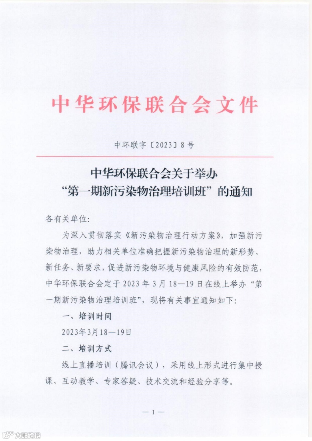 为深入贯彻落实《新污染物治理行动方案》,加强新污染物治理,助力相关单位准确把握新污染物治理的新形势、新任务、新要求,促进新污染物环境与健康风险的有效防范,中华环保联合会定于2023年3月 18-19 日在线上举办“第一期新污染物治理培训班”。