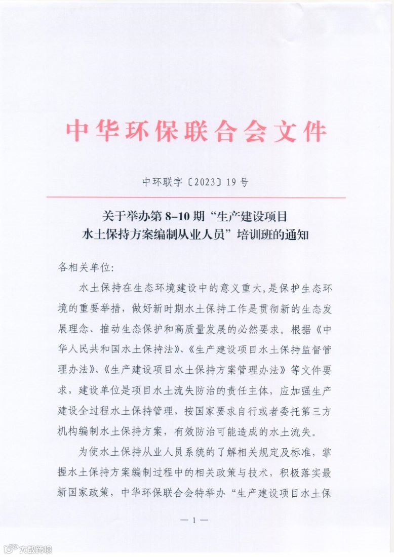 根据水土保持方案审查审批改革新情况,为使水土保持从业人员尽快掌握水土保持新政策新要求,中华环保联合会定于2023年4月15日—4月16日,举办2023年第8期生产建设项目水土保持方案编制技术人员培训班,现将具体事宜通知如下: