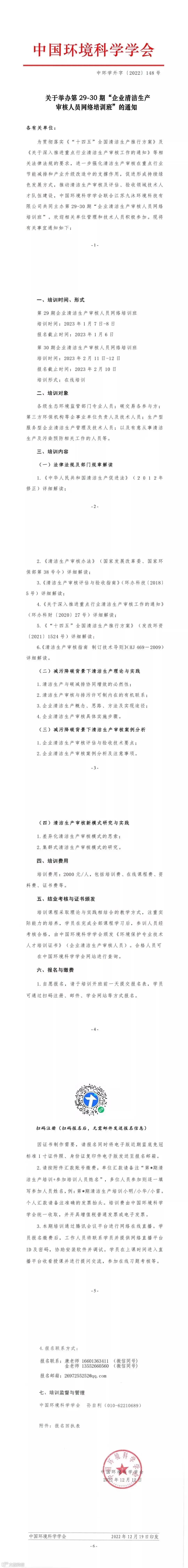 为贯彻落实《“十四五”全国清洁生产推行方案》及《关于深入推进重点行业清洁生产审核工作的通知》等相关法律法规的要求,进一步强化清洁生产审核在重点行业节能减排和产业升级改造中的支撑作用,促进形成持续绿色发展方式,推动清洁生产审核及评估、验收领域技术人才队伍建设,中国环境科学学会举办第25-28期“企业清洁生产审核人员网络培训班”。欢迎相关单位管理和技术人员积极参加。