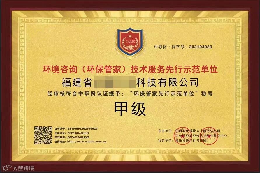 2,证书全国通用,可作为环保管家第三方服务方面职业岗位能力考核的证明,可作为项目承接、招投标、岗位聘用、任职、定级和晋升职务的重要依据;并可作为专业能力培训的证明及专业技术人员继续教育证明。同一单位报3人以上,颁发《环境咨询(环保管家)技术服务先行示范单位》牌匾。