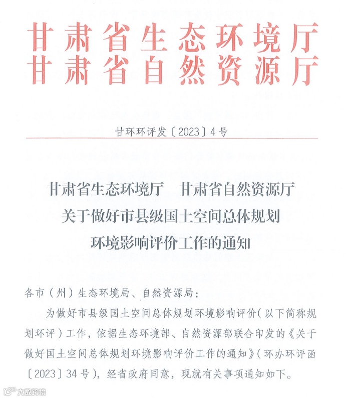 甘环环评发〔2023〕4号关于做好市县级国土空间总体规划环境影响评价工作的通知