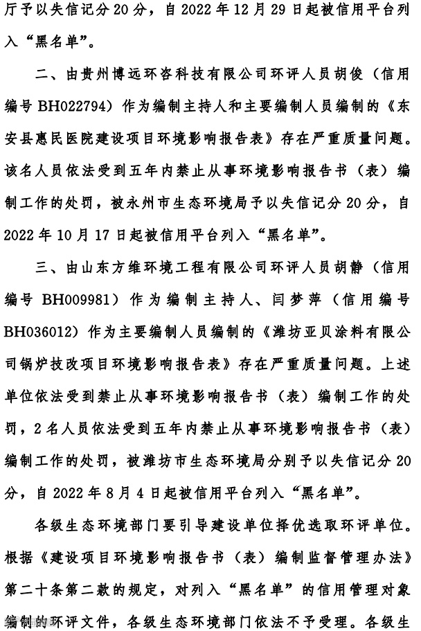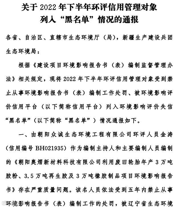 环办环评函[2023]62号关于2022年下半年环评信用管理对象列入“黑名单”情况的通报
