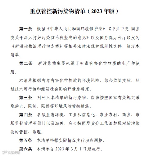 重点管控新污染物清单(2023年版)