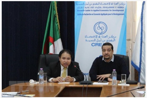 10月25日,越南驻阿尔及利亚大使馆同阿尔及利亚发展应用经济研究中心(CREAD)联合以线上和线下相结合方式举行越南与阿尔及利亚经贸推介座谈会。