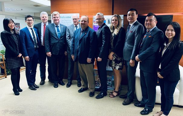 奥肯那根学院校长吉姆·汉密尔顿先生(Mr. JimHamilton)(左五)、加拿大BC省第23中央奥肯那根教育局局长暨首席执行官凯文·卡达尔先生(Mr. Kevin Kaardal)(左四)、珀塞尔国际教育有限公司总裁邓肯•麦克劳德先生(Mr. Duncan MacLeod)(右五)、加拿大BC省第23中央奥肯那根教育局助理局长里克·奥利弗博士(Dr. Rick Oliver)(左三)、奥肯那根学院国际教育总监罗素·鲍利斯先生(Mr. Russel Boris)(右六)、奥肯那根学院中国区市场营销总监斯蒂芬妮·博登女士(Ms.Stephanie Bodden)(右四)到访AQG安侨教育交流国际教育发展最新趋势