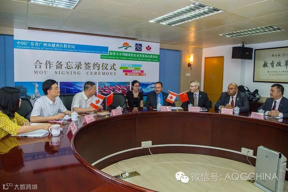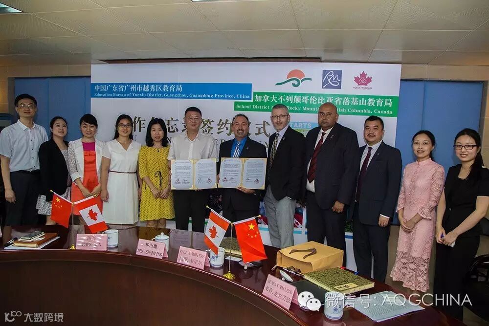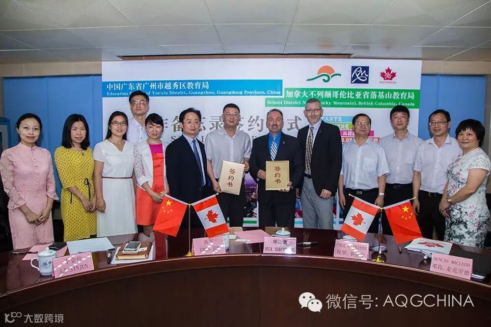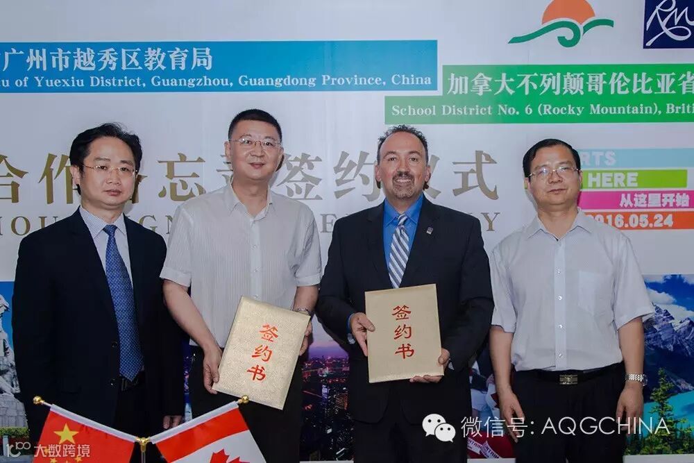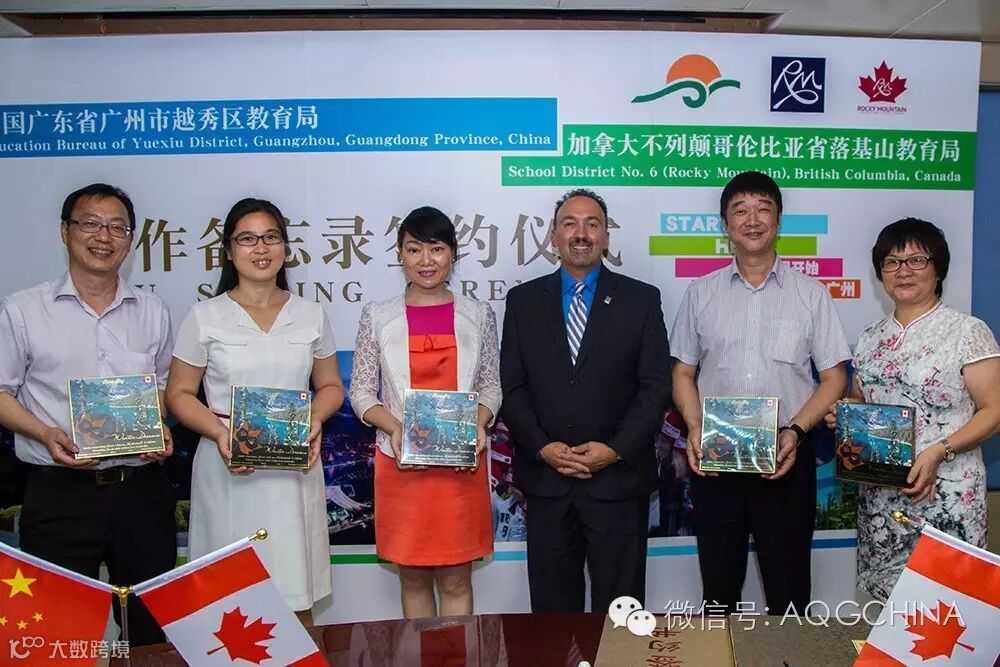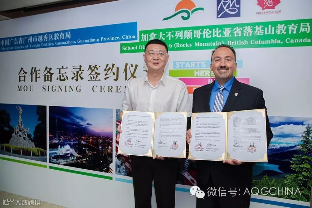 在广东省教育厅国际交流处副处长李金俊、广州市教育局主任督学华山鹰等领导的见证下,越秀区教育局隆重举行了与加拿大不列颠哥伦比亚省第六教育局——落基山教育局的《双向教育交流促进合作谅解备忘录》签署仪式,正式启动了越秀区教育局与落基山教育局中加教育局战略合作。