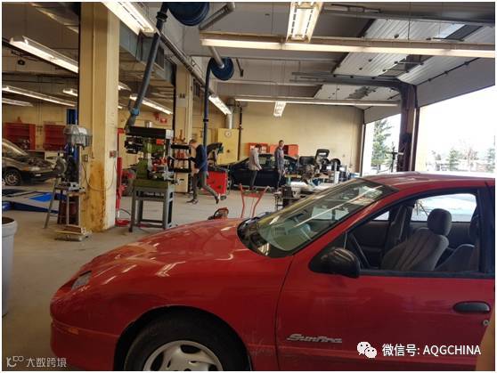 带着这种想法我如约在到达后的第三天正式来到Selkirk secondary school拜访校长MR.DOLGOPOL,并在他热情的接待下参观了学校,跟随着校长,我走进了各科的教室,说真的我当时只是想在走廊里隔窗看看满足下好奇心就好了,没想到校长直接带我走进了正在上课的教室,在女儿最喜欢的WOOLWORK 的教室里,我才真正明白为何女儿当初不听我的劝阻执意要选这门课,这里就像个小工厂,陈列的作品很难想象出自于孩子们之手,当然还有女儿的。美术课室,油画,素描,现代工艺美术,布艺。总算知道为何在国内那么不喜欢绘画的女儿,假期给我们带回来的美术作品竟成了家里的摆设张贴画。哇,学校竟然还有健身房,图书馆,自修室,室内体育馆,cafeteria。最让我震撼的是一楼竟然有个修车厂,一点都不夸张,我之前在国内中专技校去招生时看到的汽车维修专业的学生们的实操室比这个规模要小很多,我也分不清哪个是老师还是修理工了(学生),有正在改装汽车的,也有在维修的,看到这我才真正明白了,为何说加拿大的高中教给学生很多实用的技能,让那些就算是不上大学的学生们走出校门也会有生存的能力,他们在高中阶段已经开始接触我们中专技校的内容。