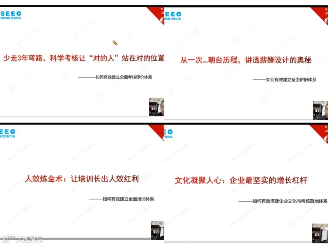 为帮助企事业单位提升人力资源管理专业水平,增强人力资源从业者的核心技能,山西股权交易中心联合山西德正天成人力资源有限公司特开展线上“1117人事管理体系”系列课程。该系列课程自7月10日起每周五线上开讲,目前已圆满完成全八期课程,累计观看人数达1000人。吸引了企业决策层、中层管理骨干及人力资源从业者等众多目标群体参与,为破解企业人才和用人难题、提升人力资源管理效能提供了有力支撑。