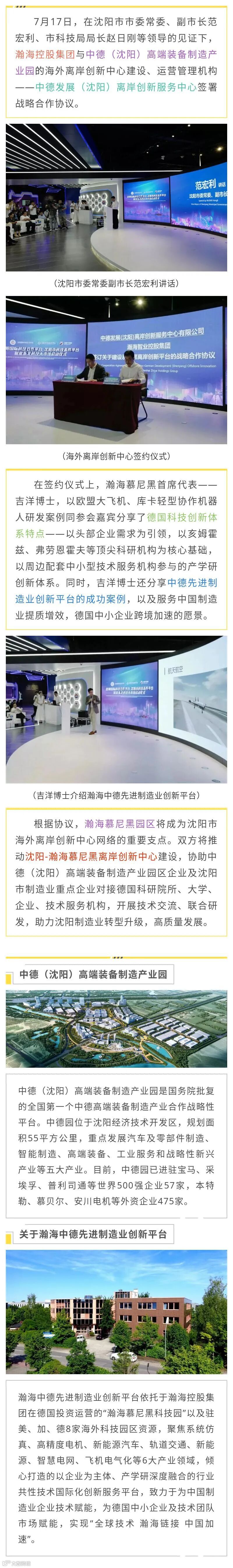 瀚海携手中德(沈阳)高端装备制造产业园 共建慕尼黑离岸创新中心