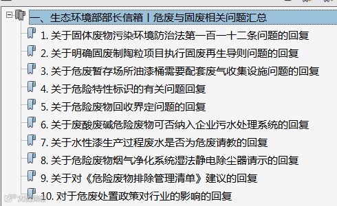 来自环境部复函、部长信箱回复、《危废名录》编制组、省厅等