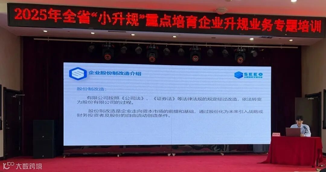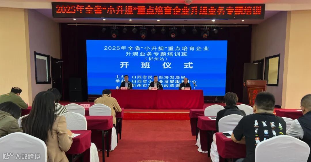 2025年9月19日,山西股权受邀参加2025年全省“小升规”重点培育企业升规业务专题培训班(忻州站)。本次活动由山西省民营经济发展局主办,山西省小企业发展服务中心、忻州市发展和改革委员会承办。此次活动旨在进一步推动全省中小微工业企业上规升级,促进我省民营经济发展壮大。山西省民营经济发展局统计监测处处长李经纬、忻州市发展和改革委员会三级调研员王小平出席开班仪式。忻州民营经济部门相关业务人员以及2025年升规入统重点培育企业负责人共计80余人参会。