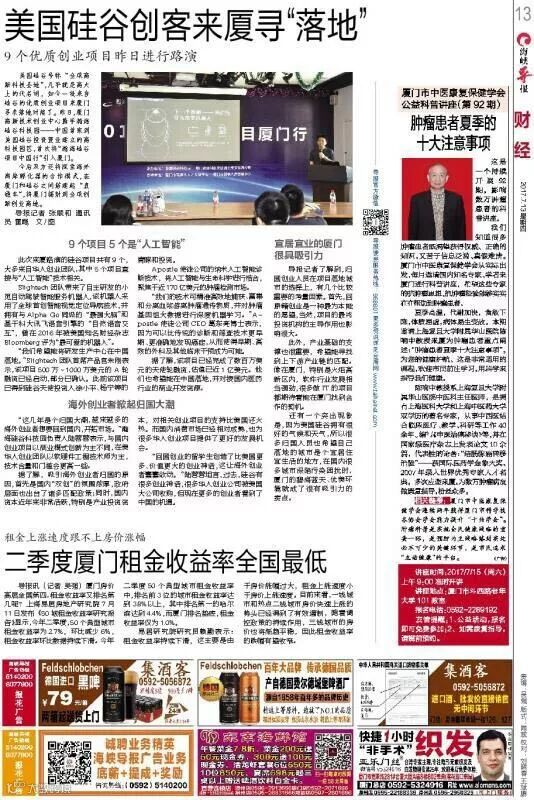 美西时间2017年9月27日上午,厦门火炬高新区硅谷创新创业基地签约仪式暨揭牌仪式在瀚海硅谷科技园顺利举行。厦门高新区领导、瀚海国际及瀚海硅谷科技园领导出席了活动,同时,硅谷当地跨国公司高管、孵化器代表、厦门籍侨胞、瀚海创业公司代表以及留学生代表等作为见证嘉宾共同参与了活动。厦门火炬高新区硅谷创新创业基地的设立将开启硅谷与厦门火炬高新区之间的无缝对接,服务于更多在厦门开展合作的海外人士,并协助厦门高新区内企业的国际化拓展,全面打造厦门高新区的国际化品牌。