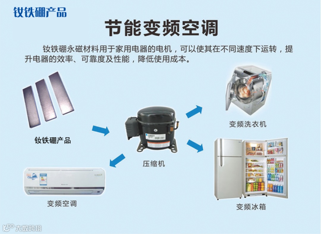 公司主要产品为钕铁硼磁性材料是镨钕、纯铁、硼铁等的合金,又称磁钢。作为稀土永磁材料发展的最新结果,由于其优异的磁性能而被称为“磁王”。稀土是重要的战略资源,也是不可再生资源。钕铁硼稀土永磁材料产品广泛应用于风力发电、新能源汽车及汽车零部件、节能变频空调、节能电梯和机器人及智能制造领域。