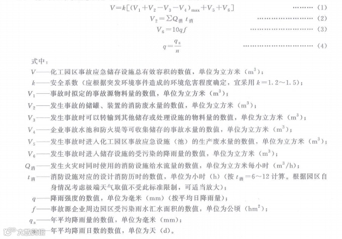 《化工建设项目环境保护设计规范》(GB 50483-2019),化工企业应急事故废水池有效容积计算公式如下: