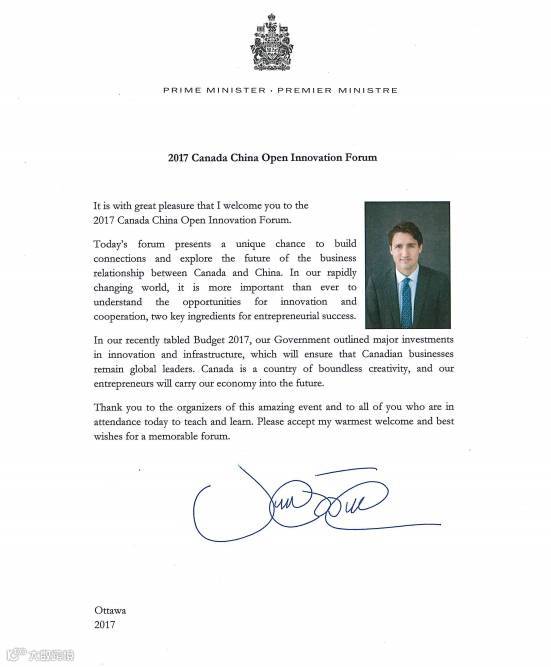 (加拿大总理贾斯汀·特鲁多贺函全文)