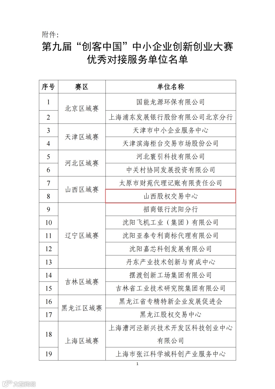 喜报!山西股权交易中心获评第九届“创客中国”中小企业创新创业大赛优秀对接服务单位