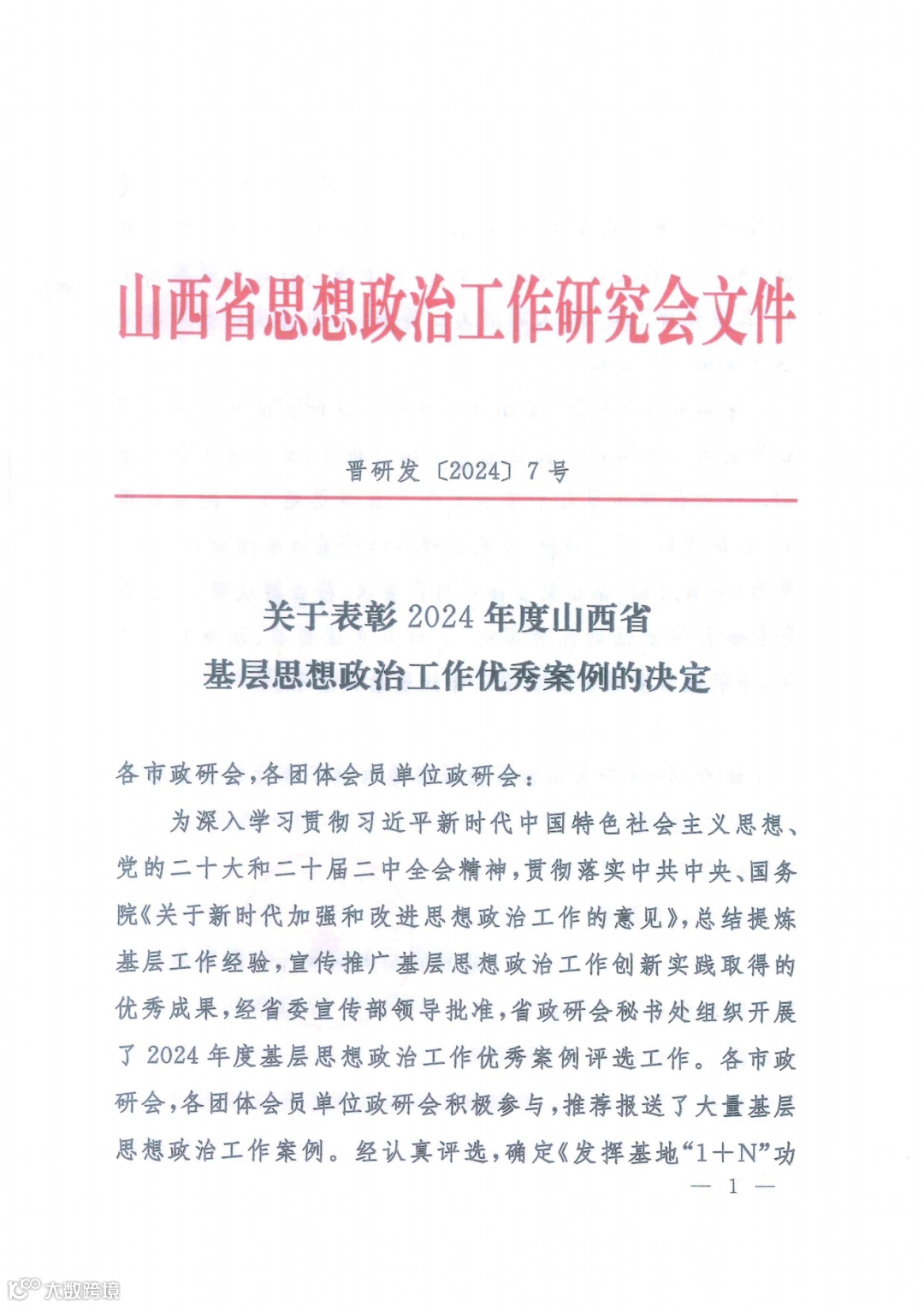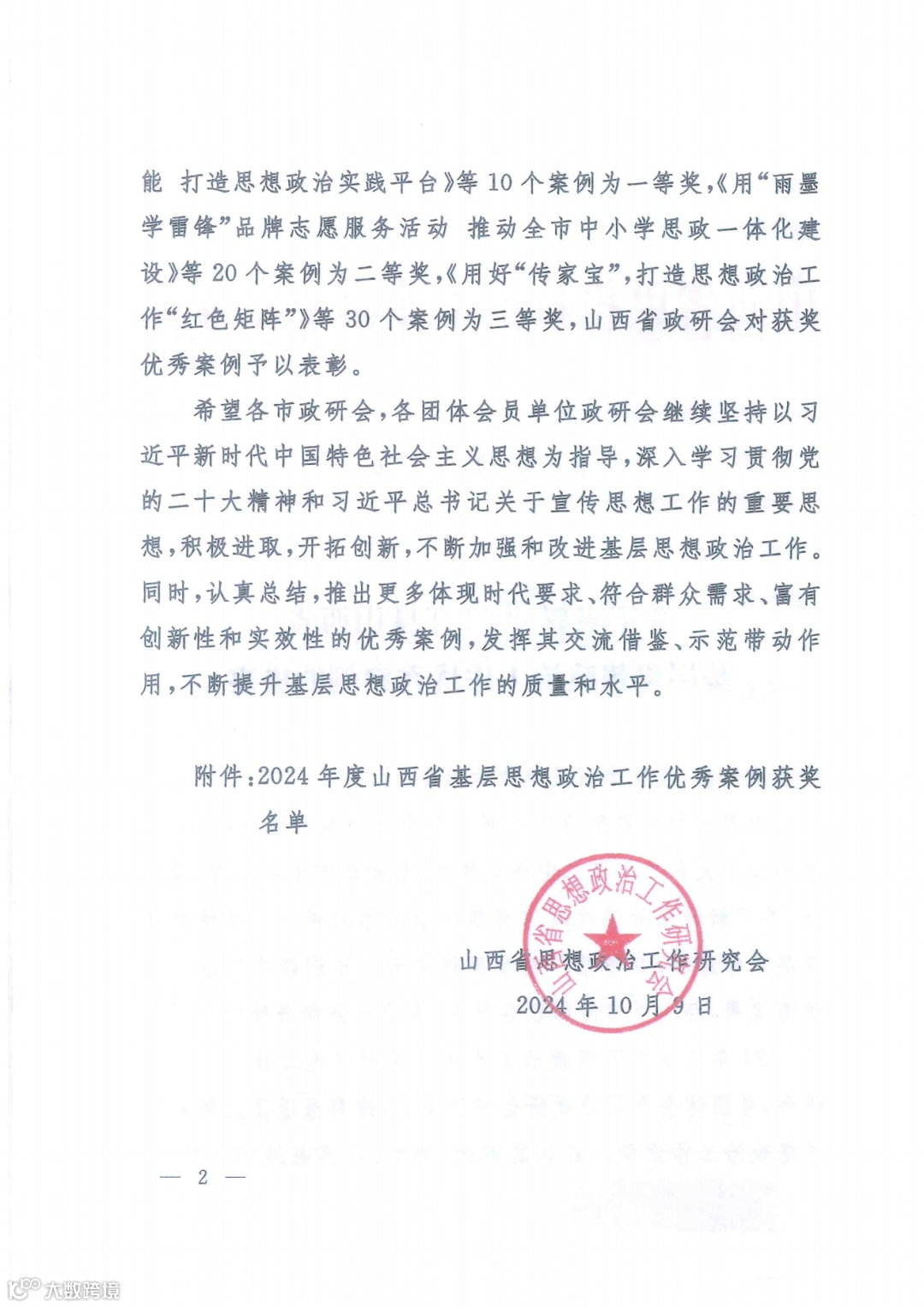 2024年度山西省基层思想政治工作优秀案例评选揭晓,山西股权