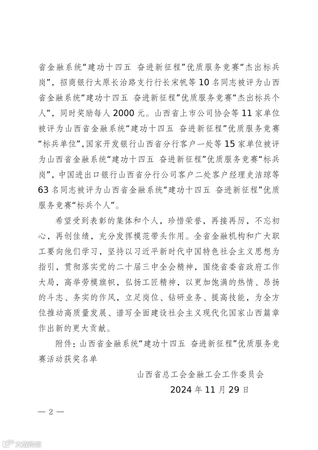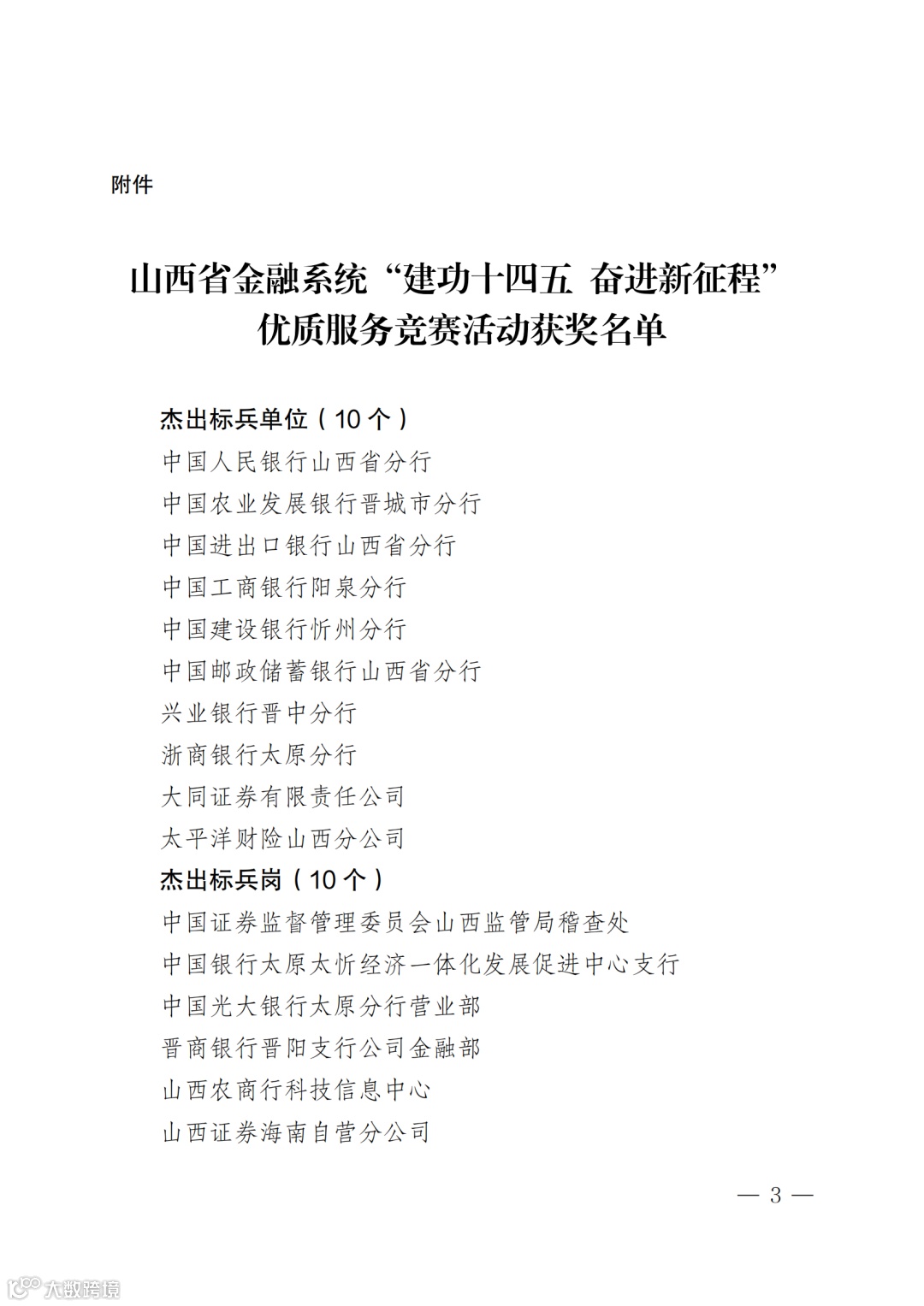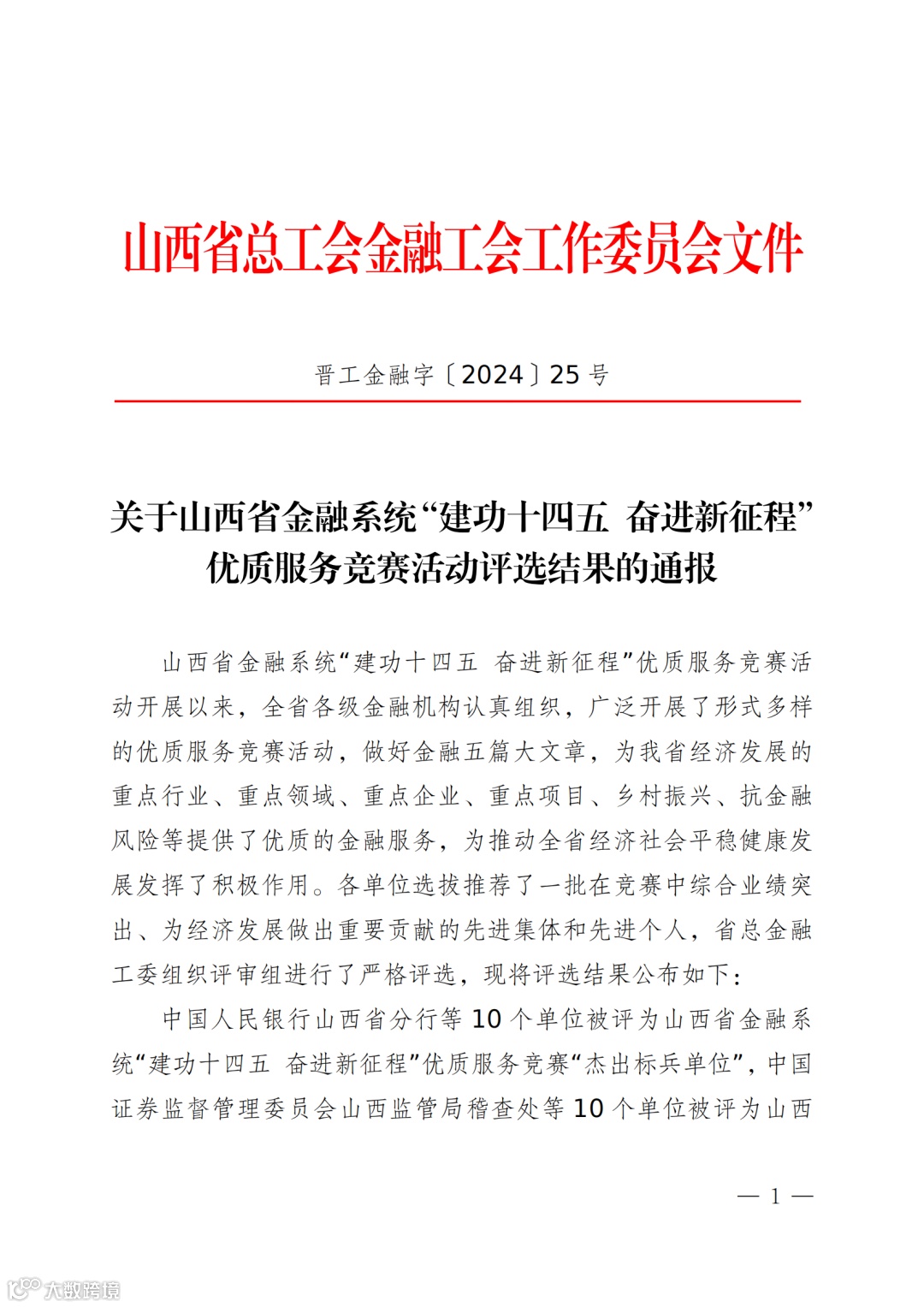 近日,山西省金融系统“建功十四五 奋进新征程”优质