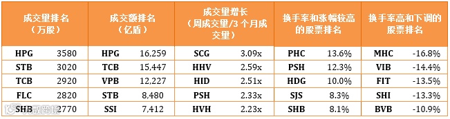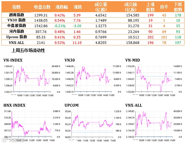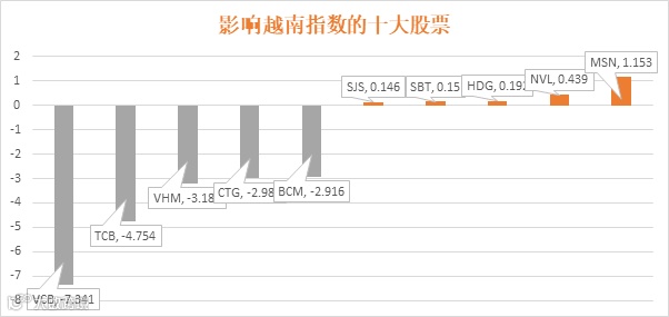 上周股指期货合约到期,当市场和VN30的成交量较低,市场突然逆转上调。目前,VN30板块进行重组,预计亚洲银行ACB、西宫啤酒SAB、工业橡胶集团将被添加,反之,黄辉金融服务投资TCH和成成功边和SBT 可能将被删除。