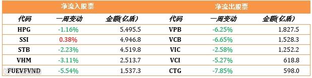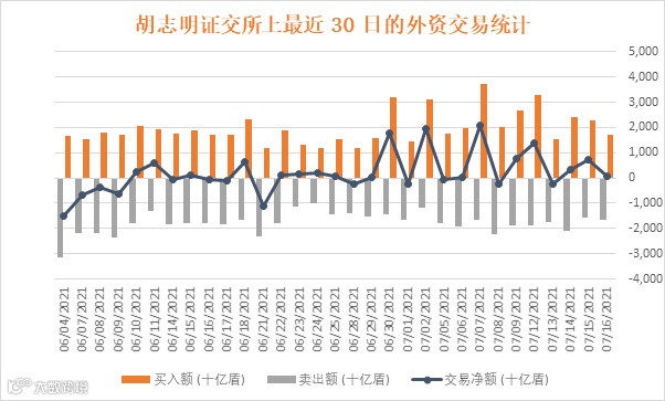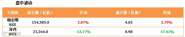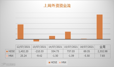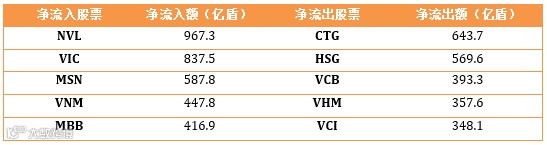 在胡志明证交所HOSE外资净流入668.9亿盾。河内证交所HNX外资净流出53.2亿盾。