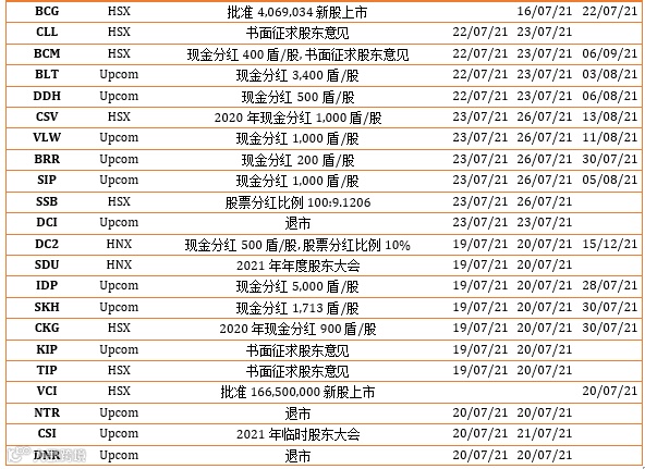 上周末,一天的新确诊病例于周日创新高为5000个,同时南部16个省市及河内实施社交间隔措施将对投资者造成较大的压力。尤其是目前国内投资者之资金流有所谨慎。本周,在疫情复杂并广阔蔓延的背景下,卖压可能将继续增加。