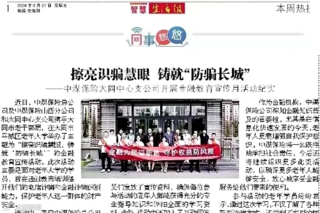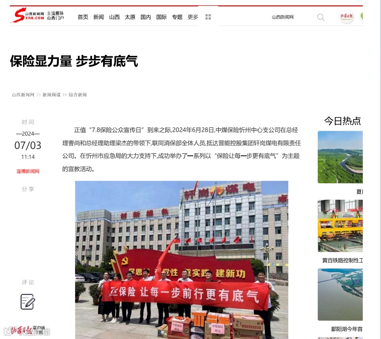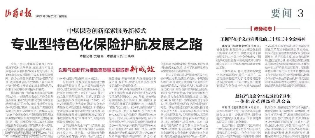 报道了关于“中煤保险创新探索服务新模式:专业型特色化保险护航发展之路”的新闻。