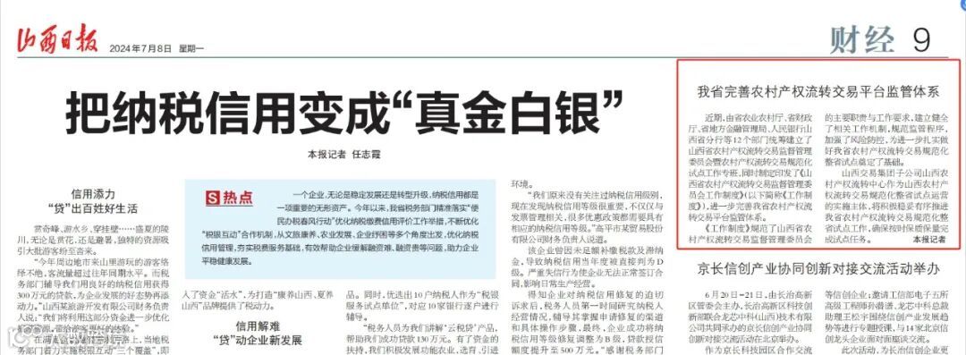 报道了关于“山西:金融改革助力高质量发展”的新闻。