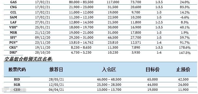 目前受益于公共投资的行业包括:钢铁(HPG、HSG、NKG)、水泥(HT1、BCC)、石头-沙子(DHA)、沥青(PLC)、建设施工(HUT、FCN)和间接受益的住宅地产、工业区地产(GVR、SZC)。投资者入仓应关注合理的入仓区并评估该股票的收益期延续多久。