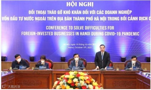 10月19日上午,河内市人民委员会召开“化解外资企业疫情期间困难对话”会议。