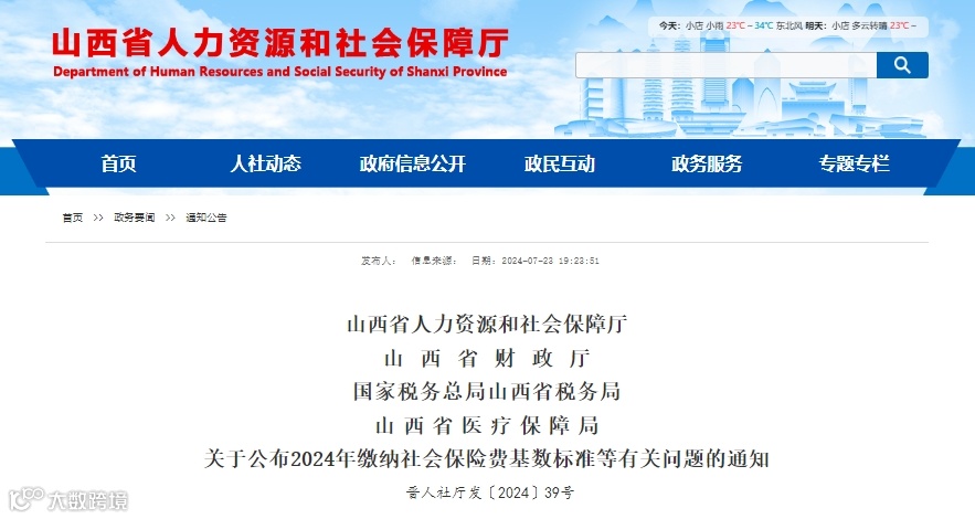 根据《山西省人民政府办公厅关于印发山西省降低社会保险费率实施方案的通知》(晋政办发〔2019〕26号)相关规定,现将2024年缴纳社会保险费基数标准等有关问题通知如下:
