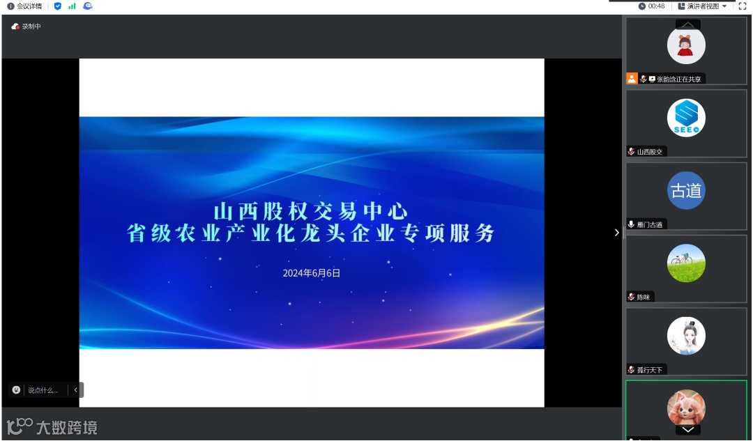 山西股权交易中心组织开展省级农业龙头企业线上专项服务活动